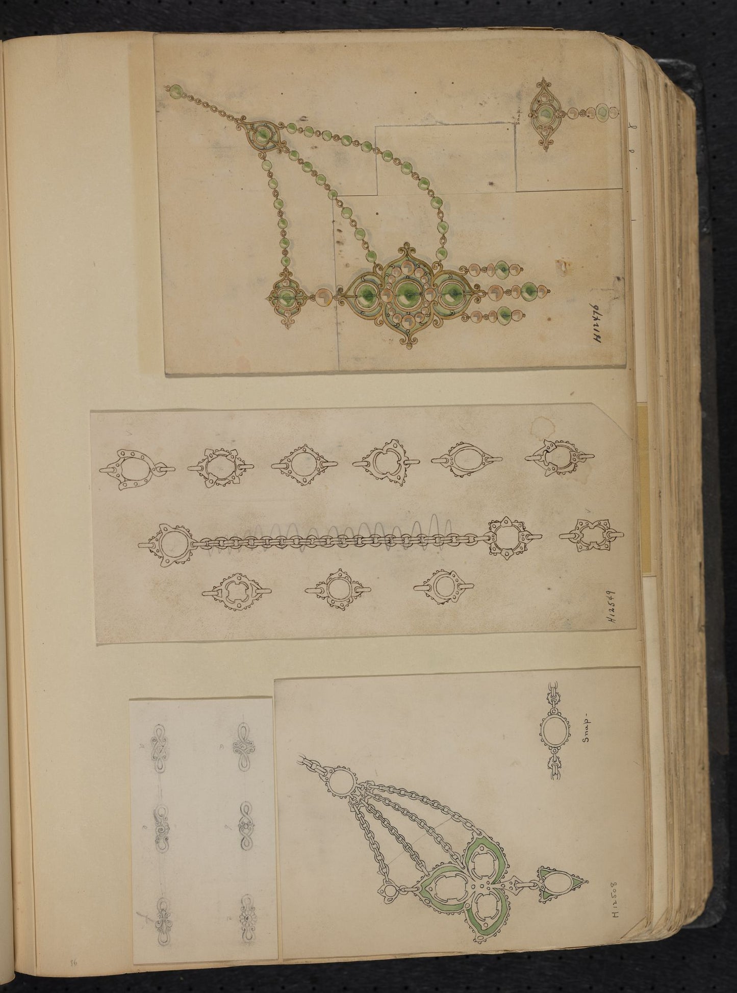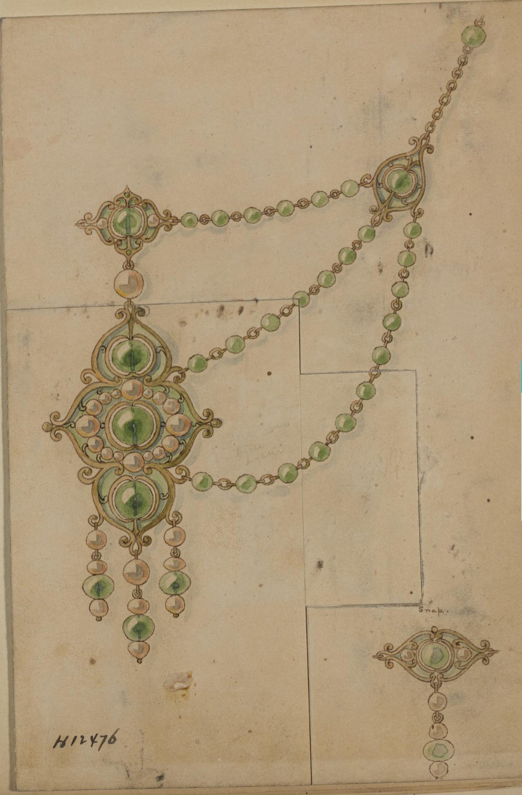 Documentation: The drawing appears in the volume Chains, Necklaces, Hair Ornaments, Hat Pins, No. 2, p. 41, housed in Dartmouth's Rauner Library. The volume is digitized.