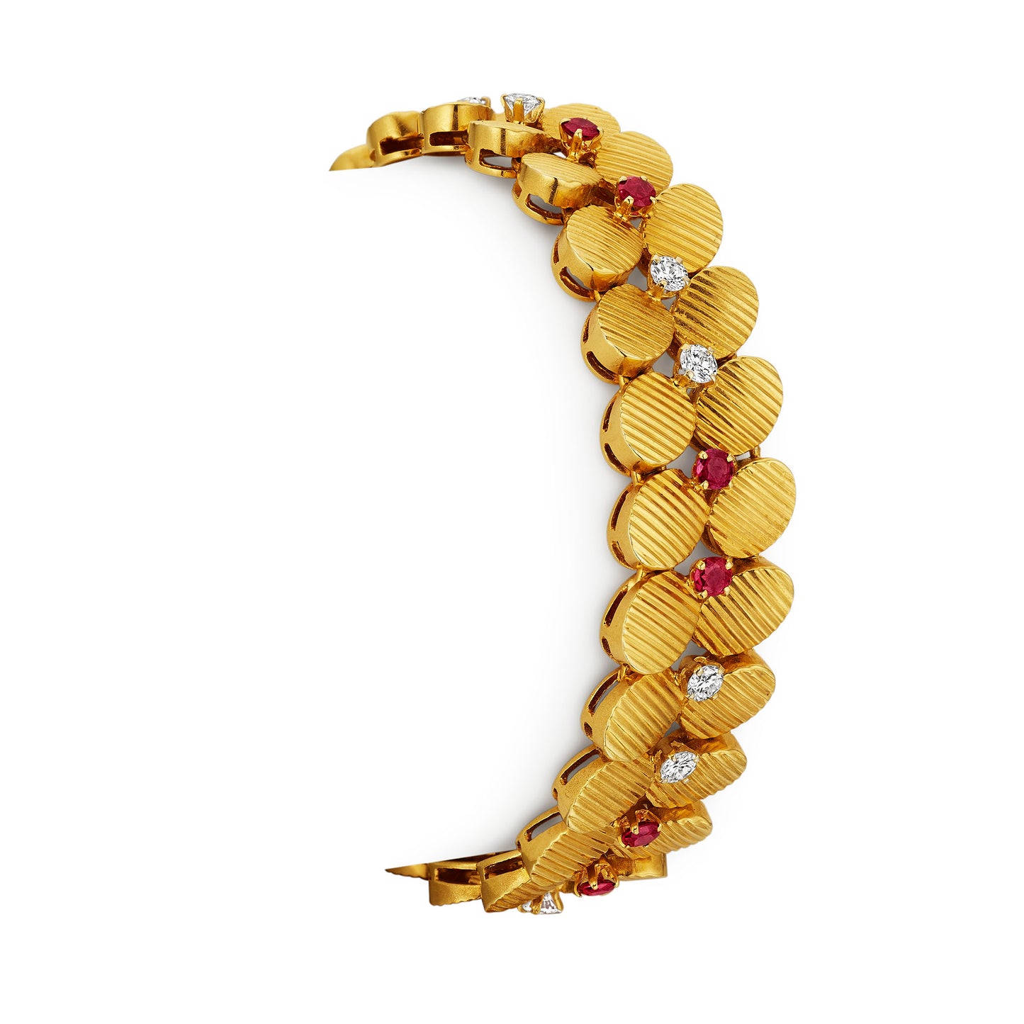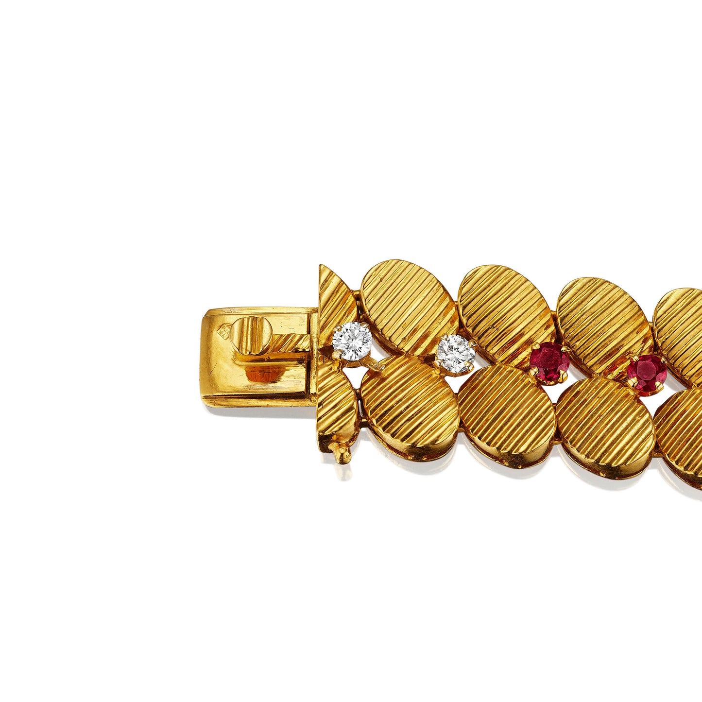 Materials: Necklace: 14 round-cut rubies (approximate total weight 1.50 carats); 12 round brilliant-cut diamond (approximate total weight 1.50 carats); Bracelet: 12 round-cut rubies (approximate total weight 0.90 carat); 13 round brilliant-cut diamond (approximate total weight 1.20 carats); 18K Gold